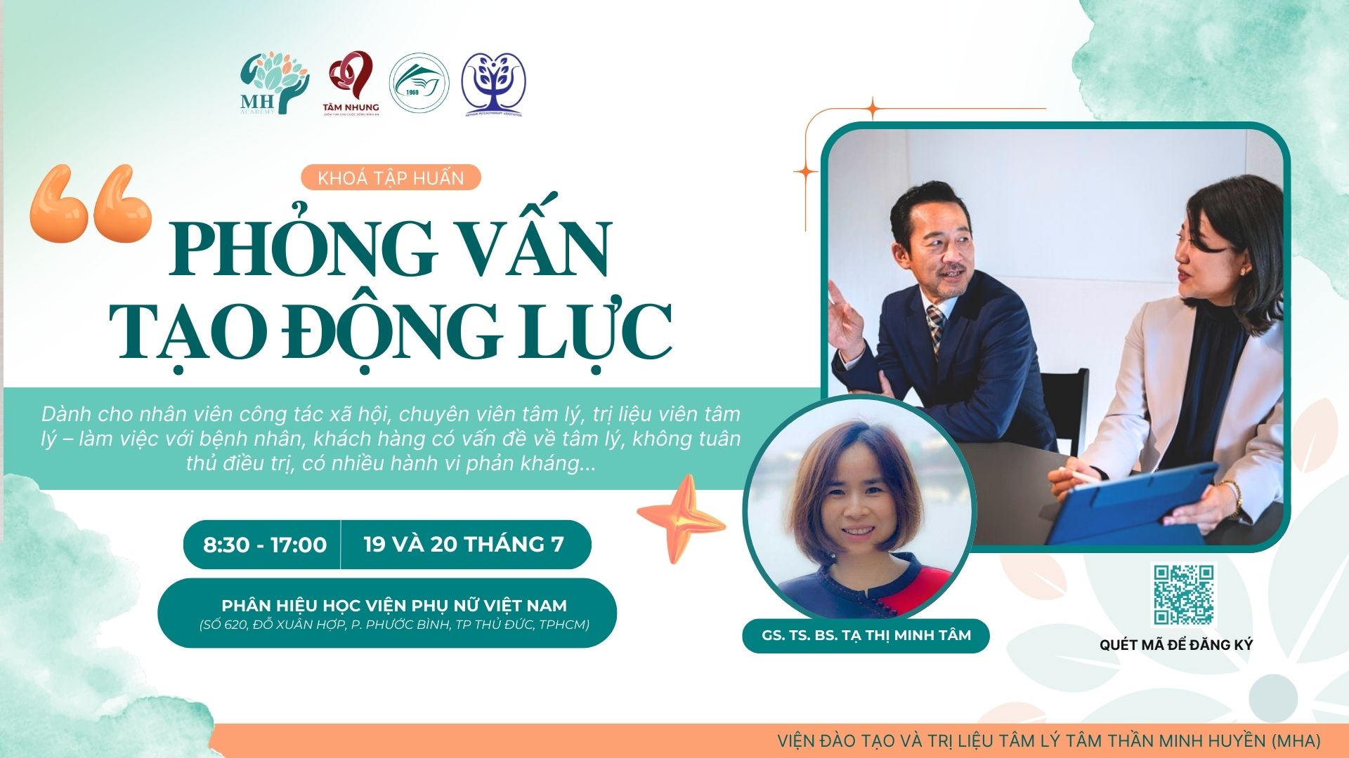 PHỎNG VẤN TẠO ĐỘNG LỰC (MOTIVATIONAL INTERVIEWING – MI)” (Dành cho nhân viên công tác xã hội, bác sĩ tâm thần, bác sĩ, trị liệu viên tâm lý, điều dưỡng – làm việc với bệnh nhân, khách hàng có vấn đề về nghiện, không tuân thủ điều trị, có nhiều hành vi phản kháng...)